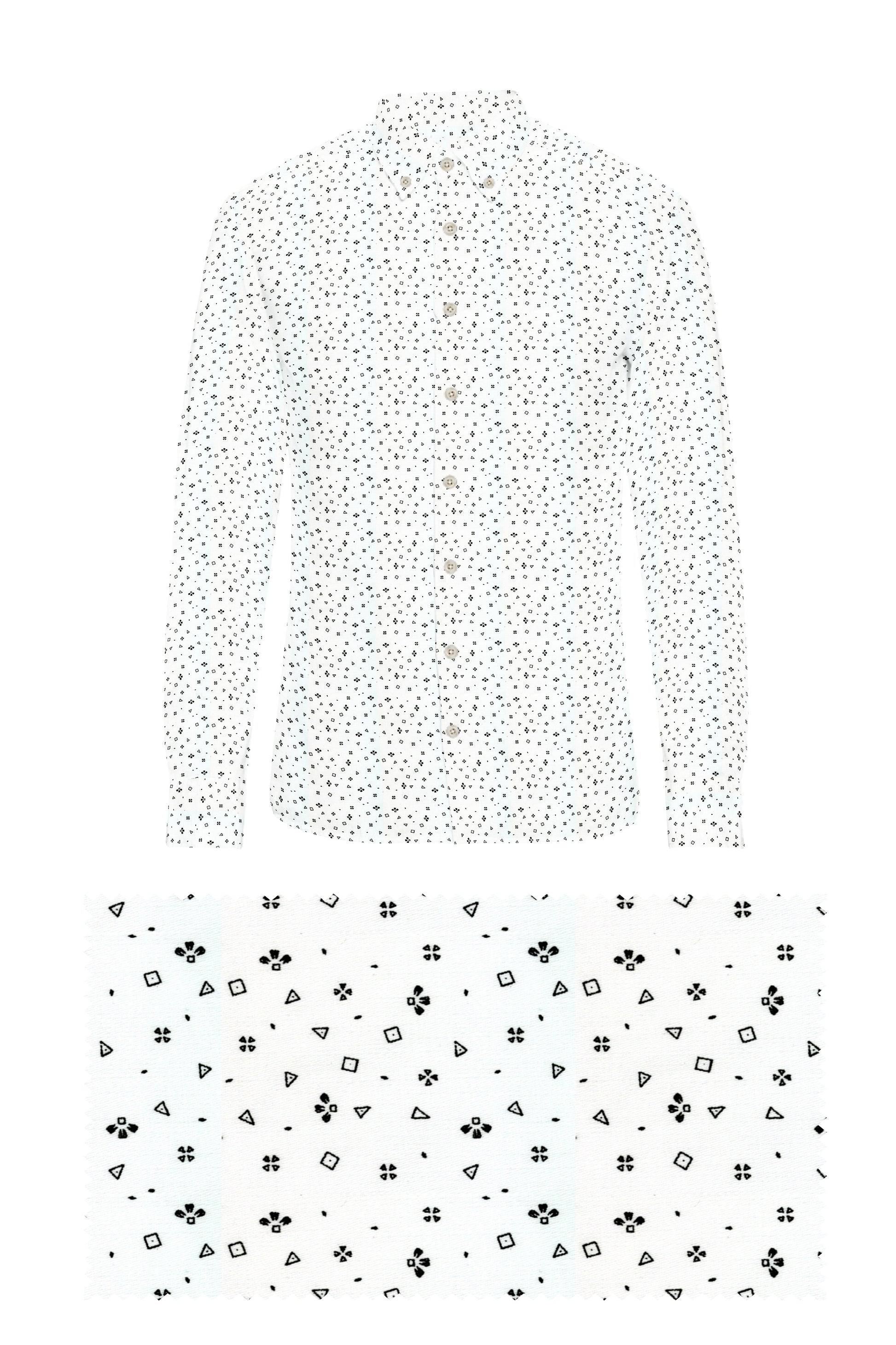 This stylish Geometric Print White on Black Shirt is handmade from 100% cotton and perfect for the modern man. With its bold print and classic black and white colour scheme, it is an excellent choice for any man looking to make a statement with their style. The perfect gift for the fashionable man in your life, this shirt is sure to be a hit.