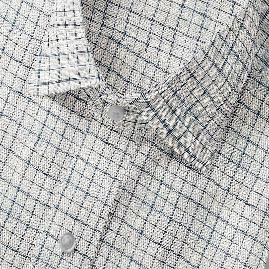 Experience the elevated elegance of our Harmony Check Linen Shirt. Handcrafted with 100% linen, this refined menswear staple is the perfect gift for those who appreciate the beauty of artfully crafted garments.